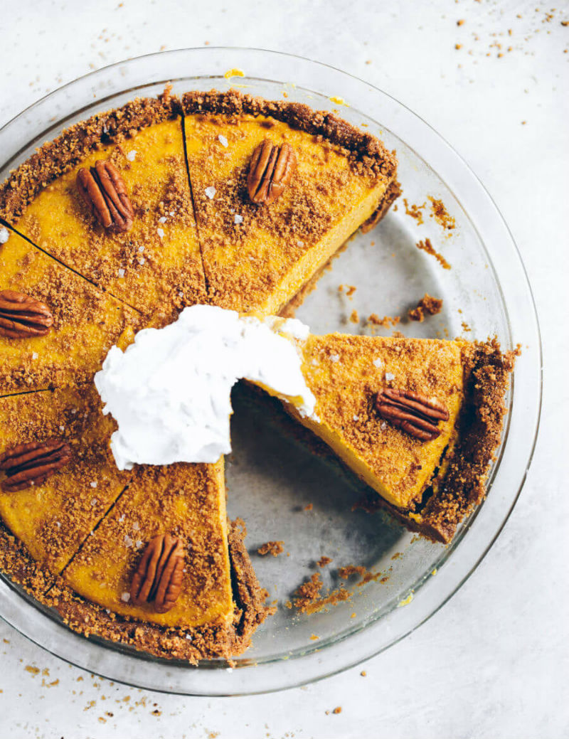 Von demselben Blogger, der uns zu diesem Funfetti-Kuchen brachte, mussten wir diesen saisonalen Favoriten aufnehmen, den jeder um Thanksgiving ausprobieren wird. Kürbiskuchen trifft Käsekuchen in dieser veganen Twist auf einem klassischen Teller. Mit einer Pecan-Kekskruste gepaart? Wir sabbern buchstäblich ...