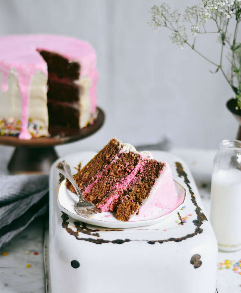 Dieser schöne Kuchen verdient es, auf einem dieser Back-Shows zu sein - und es ist ein glutenfrei, veganer, der zu booten ist! Kaum zu glauben. Pistazien und Erdbeer-Chia-Jam sind die Sterne in diesem Schwammkuchen, alle mit einem süchtig machenden Kokosnussbasis zusammengeklebt.