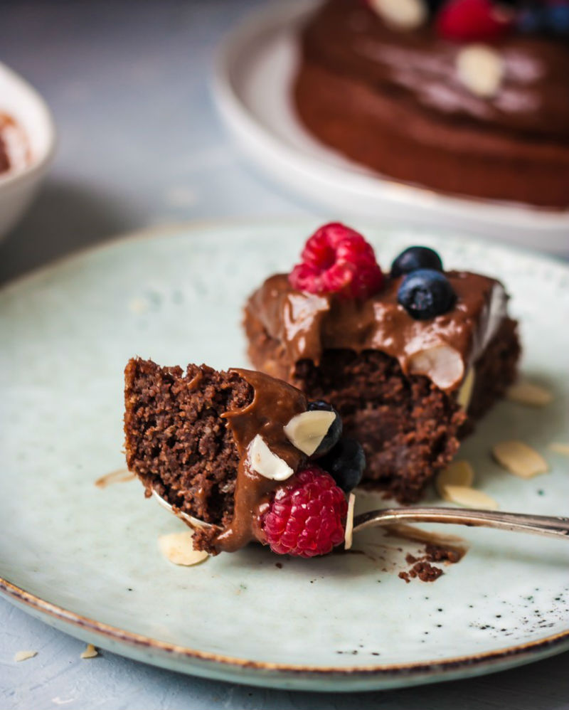 Anscheinend ist Avocado eine beliebte Puderzutat für gesunde Desserts! Dieser wunderschöne Schokoladen-Banana-Kuchen wird mit Avo-Choco-Wahnsinn zusammen mit Ahornsirup und Kakaopulver gekrönt. Es ist nur eine Schicht, also wäre es nicht so groß, dass ein Deal in einer Portion essen würde, richtig?