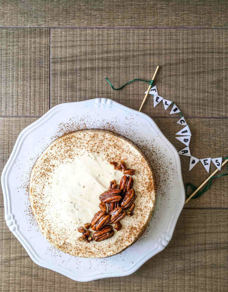 Dieser halbnackte gesunde Karottenkuchen ist auf dem Martha-Stewart-Spiel. Dieser Muskatnusshalo und die kunstvoll gruppierten Pekannüsse mit nur der richtigen Menge an Frostern. Sahnekäse oder Labneh machen diese Behandlung super feucht, und das Ergebnis ist genauso dekadent wie sein zuckerhaltiges Gegenstück.