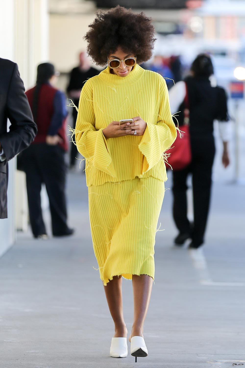 Abgesehen von ihren herrlichen Haar- und Musikvideos hat Solange auch einen Bangin-Körper, der sie oft wunderschön kleidet. Niemand fault Gelb besser als Solange und sie