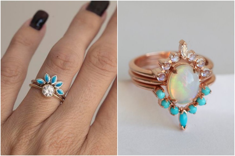 Türkis ist eine großartige Farbe für Aquarius, es passt gut zu ihnen, und sie haben nichts dagegen, auszustehen. Sie lieben es, einen einzigartigen Twist auf alles zu haben, und ein Verlobungsring ist keine Ausnahme. Wir empfehlen, einen Ring zu bekommen, der in Form und Farbe hervorsteht, und natürlich einige Türkis integrieren.