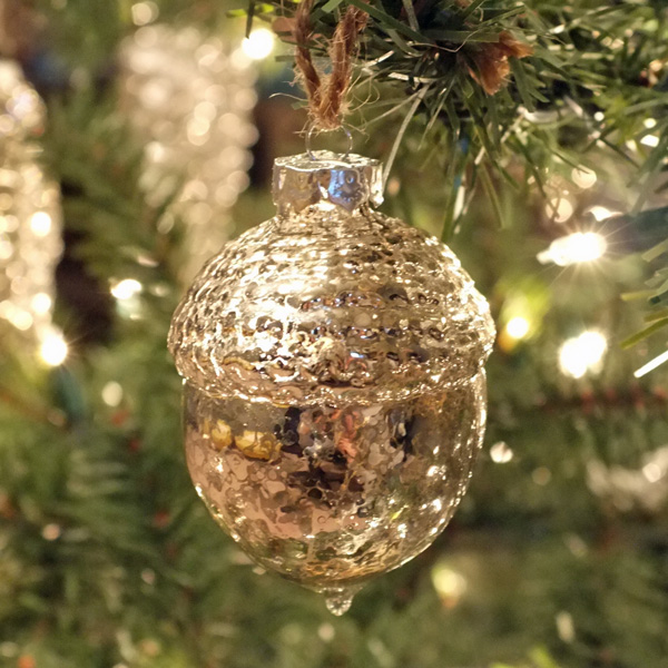 Quecksilberglas-Ornamente können Ihr Dekor aufschreiten und ein bisschen Schimmer hinzufügen, ohne sich als zu klebrig auszuziehen. Weiche Farben haben ein metallisches Finish, ohne zu überwältigend und laut auszusehen. Versuchen Sie winzige Akzent-Ornamente wie Eicheln oder Kastanien oder gehe mutiger mit größeren Silhouetten und hellen Farben.