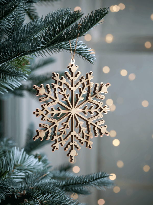 Ein eleganter erwachsener Aufwachen mit Schneeflocke-Dekor, und wir lieben es. Sie haben ein Vintage-Gefühl und der Kupferfell ist schön gegen den Wald grün von Kiefernnadeln, und macht die Metallbeschaffenheit ein bisschen wärmer und weniger krass.