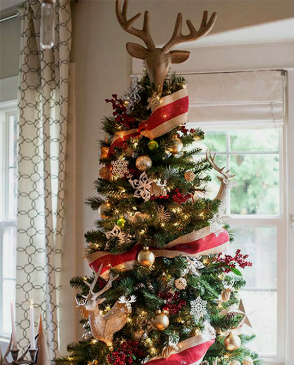 Nein, wir schließen nicht vor, dass Sie ein buchstäbliches Tierkopf steuern und auf Ihren Baum legen. Diese rustikale Neuinterpretation kann mit Zweigen oder Zweigen erfolgen oder aus Holz geschnitzt werden. Wirst du dort eine rote Nase plupen?