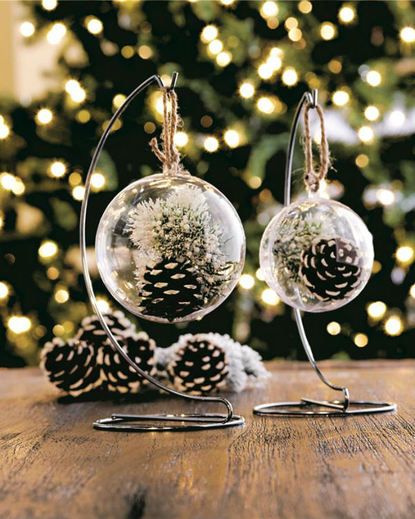 Diese bilden entzückende Ornamente und sind eine perfekte Alternative zu den hellen metallischen Ornamenten, die klassisch einen Baum abdecken. Sanfte Kugeln mit Schnee gefüllt sind viel malerischer, denkst du nicht?
