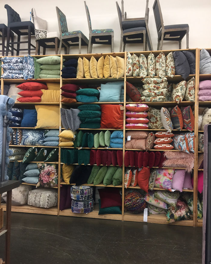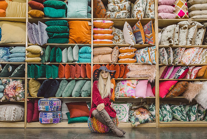 Wir wurden noch ein weiteres Standort- und Outfit-Wandel in der bunten Kissenabteilung behandelt. Sie hätten die Rabattzeichen herausgeben können, und die Kissen sahen uns nicht zu hoch aus. Der Denim-Hut ist auch ein bisschen zufällig, aber der Rest der Bilder war ein Sieg in unserem Buch.
