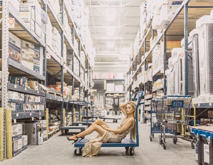 Sie gingen hinein, sehr übertrieben für einen Baumarkt und hatten ungefähr eine Stunde, bevor der Laden geschlossen wurde. Sie begannen in einer Mischung aus breiten und engen Gängen, die ihre Modellpose gegen Bäume und Farbproben hatten. Die Schmerzproben sahen eigentlich ziemlich atemberaubend aus und bieten ein ätherisches Ambiente, insbesondere gegen das langen blonde Haar des Modells. Während die Shits bearbeitet werden mussten, sehen die Post-Edits erstaunlich Tumblr-Schuss und sehr editorial - Sie würden nicht erraten, dass es in einem Heim- und Hardwareherjahr war.