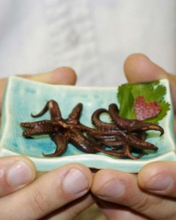 Und noch mehr darüber! Wenn Sie Ihre Familie hassen oder versuchen, mit jemandem zusammenzubrechen, ist dieses Rezept eine gute Garantie. Auf den ersten Blick sieht es aus wie süße Pralinen wie kleine Tintenfisch, aber Nein, es ist buchstäblich Tintenfisch mit einem Schokoladengehäuse. Meeresfrüchte und Schokolade klingen misstrauisch, aber vielleicht.