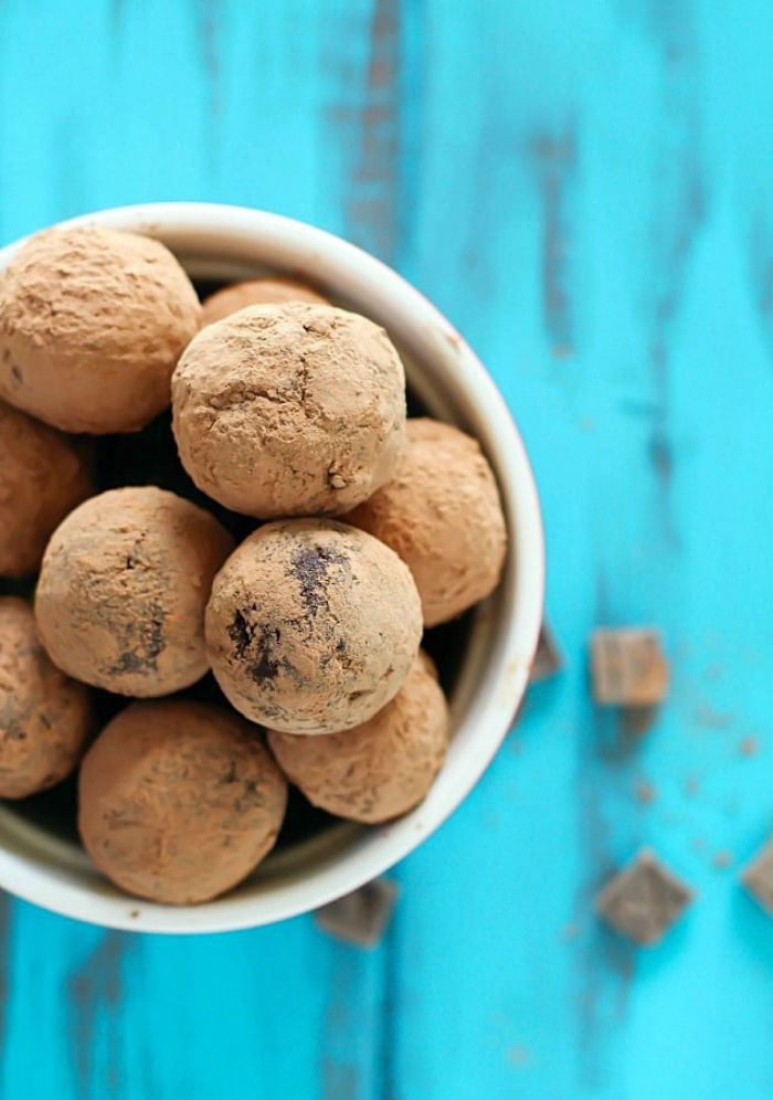 Diese sehen nur aus wie normale, köstliche Trüffel, aber es gibt tatsächlich Avocado, der sich dort versteckt. Ja, Sie können Ihre tägliche Dosis gesunder Fette erhalten und immer noch dunkle Schokoladenfrüchte wie eine Königin essen. Eine erstaunliche Geschenkidee, die unter 100 Kalorien ein Pop ist.