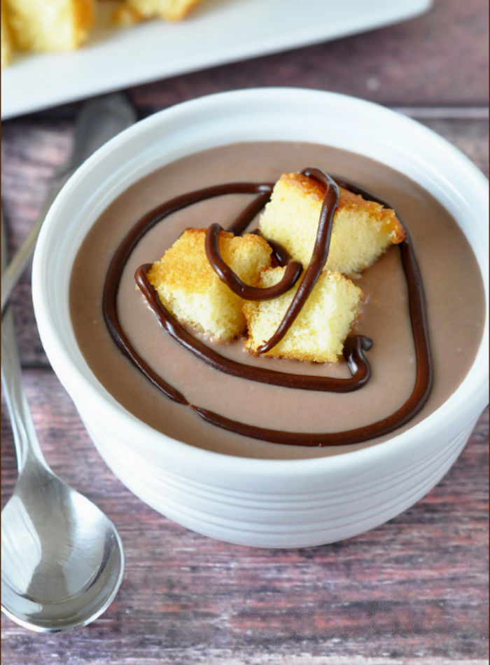 Ok, dies ist nur geschmolzene Milchschokolade mit Croutons aus Kuchen. Dieselbe Art und Weise, wie ein Kind geschmolzene Eiscreme "Eissuppe" nennt, aber wir sind immer noch Trottel dafür. Eine DIY-Version ist problemlos erreichbar, wenn Sie nur ein paar Schokoladenstäbe mit der Mikrowelle befinden und einen stillen Kuchen an der Hand haben.