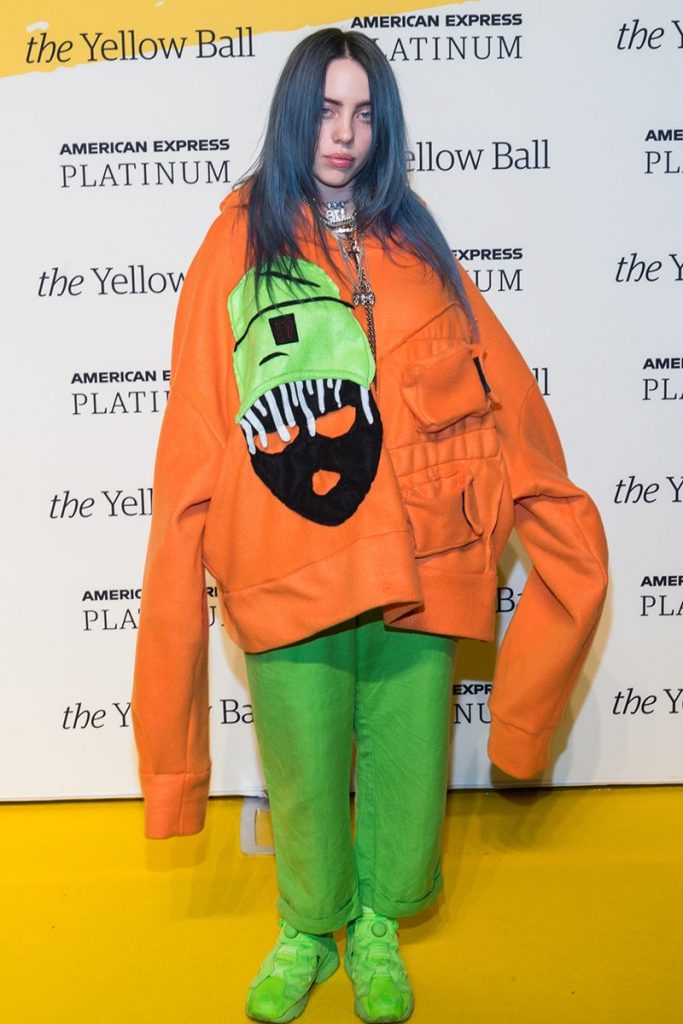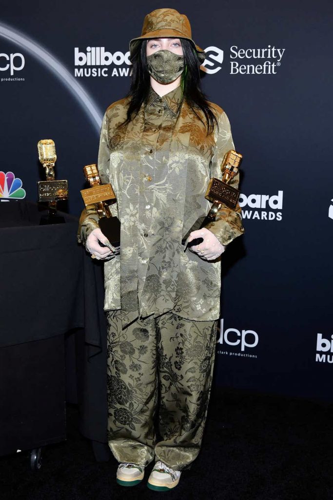 1. Dies ist eine der subtilen Farbwahl, die Billie über die Jahre gemacht hat. Sie trug dieses Head-to-Toe-Seidengrün-Gucci-Outfit an den 2020 Billard Music Awards. Der passende Eimer-Hut und die Maske auf dem Sänger waren ein ernstes Vereisung auf dem Kuchen. Wir leben für Earthy Billie, aber ich hoffe, sie verliert ihre Liebe nicht nach Neon.