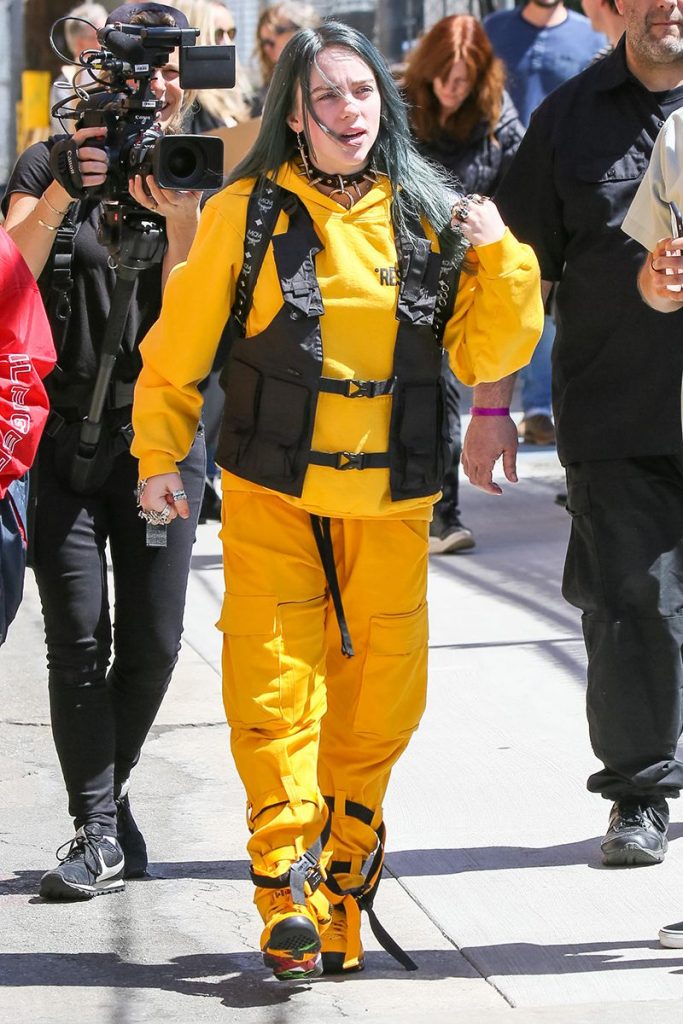 6. Helle Orange ist keine Farbe, für die sich die meisten Menschen entscheiden, aber Binrie schreibt nie von Fett aus und trug das zuJimmy Kimmel live. 2019. Wir würden niemals denken, schwarze Gurte und Schnallen mit einem orangefarbenen Sweatshirt und Frachthosen zu koppeln. Jeder andere würde aussehen wie ein Halloween-Kürbis, aber mit Billies Vertrauen fault sie es mit Leichtigkeit.