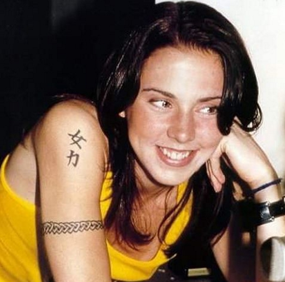 13.Das chinesische Symbol Tattoo sportlich Gewürz hat auf ihrem Arm "Kraft" und "Frau". Also im Grunde Mädchen Macht.