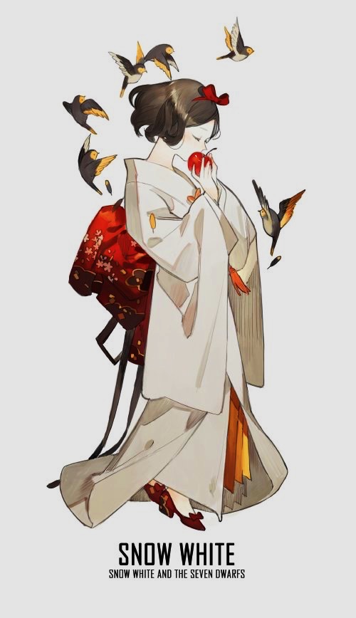 Normalerweise sehen wir Schneewittchen umgeben von sieben Zwergen. Es ist also wirklich erfrischend, sie alleine zu sehen, mit nur den Vögeln, die sie angeblich dazu beitragen, sich zu kleiden, genau wie in der Disney-Karikatur.