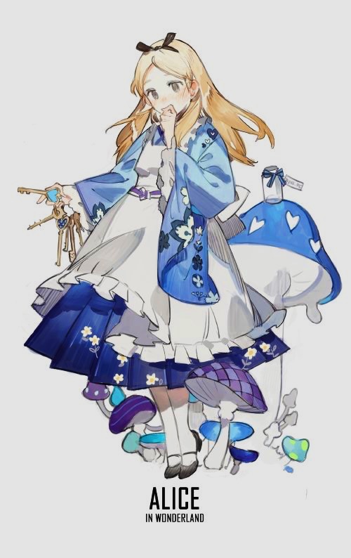 Alice im Wunderland ist eine Menge der Lieblingsbuch der Menschen, und es ist ziemlich unglaublich, wie leicht sie sich in eine Anime-Schönheit verwandelt. Die blauen und lila Pilze sind auch eine nette Note.
