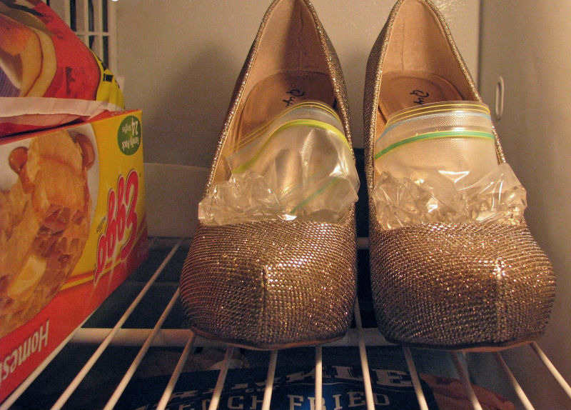 4. Wenn Sie Wärme an Ihre Fersen anwenden, nervös, können Sie immer einfrieren! Nein im Ernst. Stecken Sie eine Tüte Wasser in die Vorderseite Ihrer Schuhe und legen Sie sie über Nacht in den Gefrierschrank. Übertracke die Schuhe nicht, und lass sie nicht innen schmelzen, was auch immer du tust!