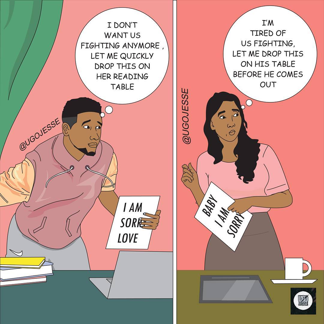 Ugo Jesse ist ein nigerianischer Karikaturist, Illustrationen mit urkomischer kleiner Rede Bubbless vervollständigt. Scrollen durch seine Seite ist wie ein Comic-Buch in einem viel verdaulicher Form zu lesen, und einige seiner Inhalte ist ziemlich provokativ!