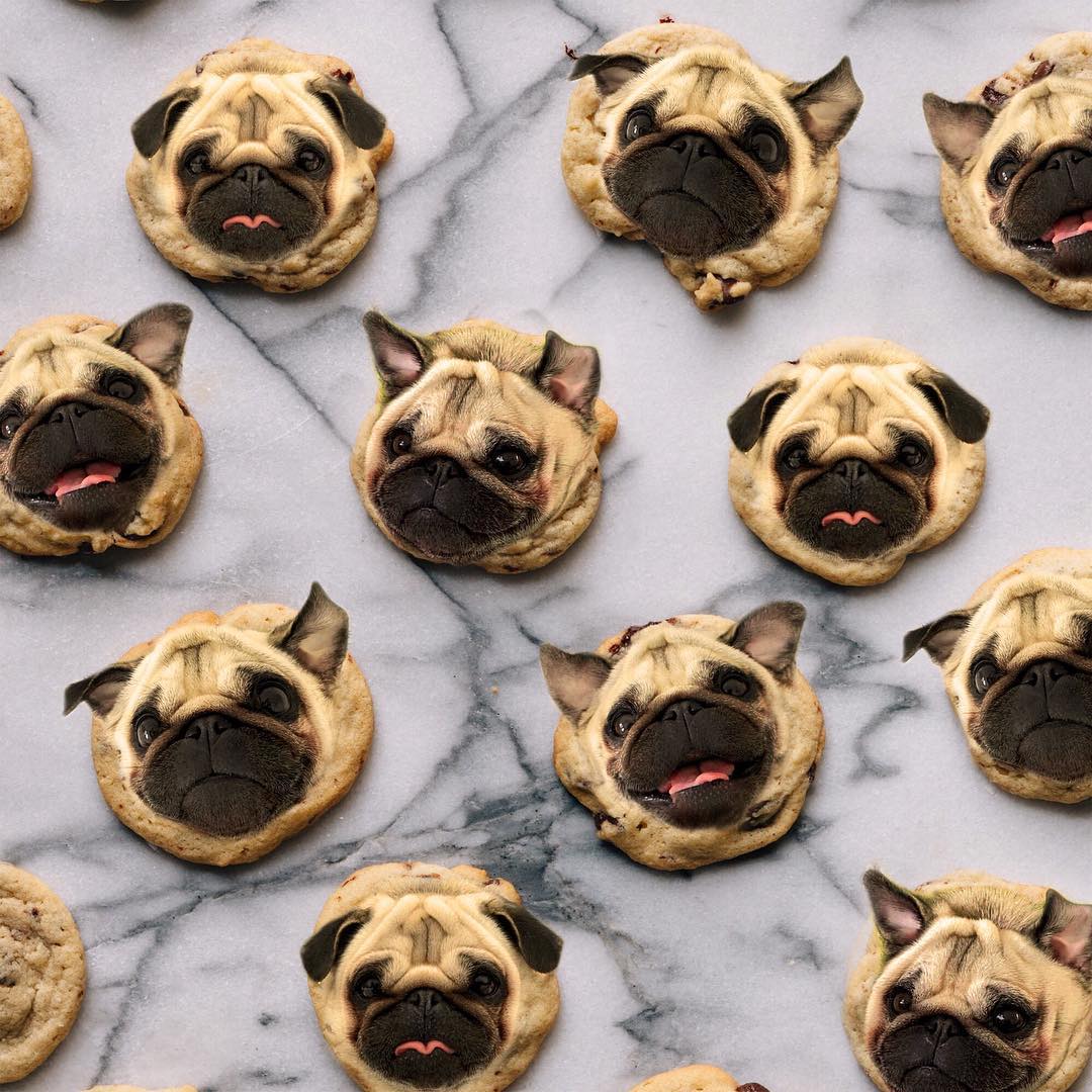 Während einige der Designs mehr in Ihrem Gesicht sind (eine französische Bulldogge-Dab in der Mitte einer Pepperoni-Pizza), sind andere subtil und werden eine Sekunde zum Spot nehmen (im Zentrum einer Zimtrolle tarnen).