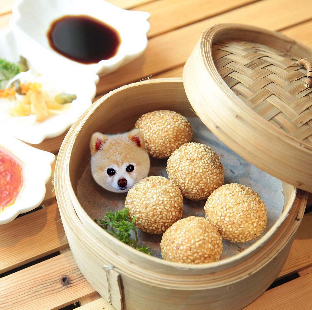 Dieses bizarre Kontodogs_infood. Nimmt diese milde tierische Besessenheit auf die nächste Ebene. Es bietet Hunde Photoshope in eine Vielzahl von Gerichten.
