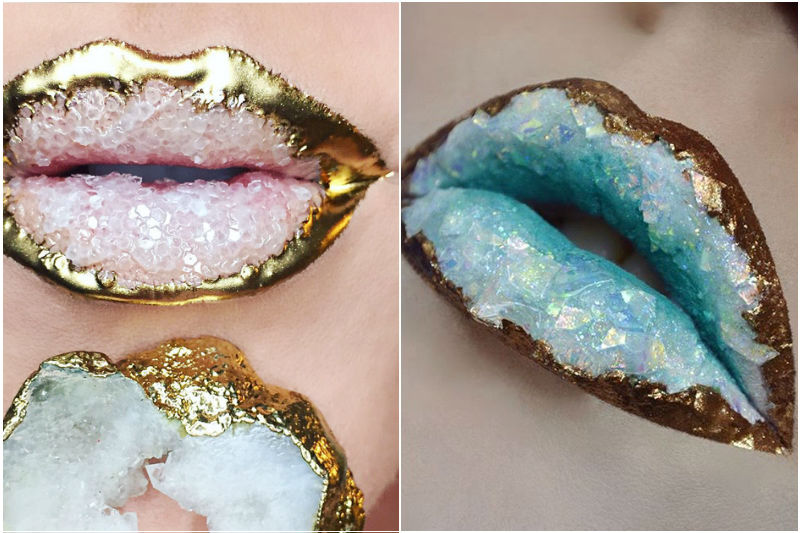 Geode Lippen nehmen wahrscheinlich eine lächerliche Menge an Zeit, neu zu erstellen, aber es garantiert einen Wow-Effekt. Die Textur selbst ist hypnotisierend und Sie haben unendlich viele Möglichkeiten, wenn es um Farbe geht.