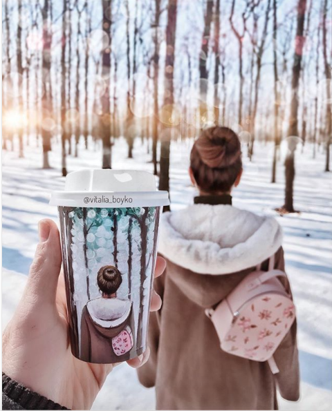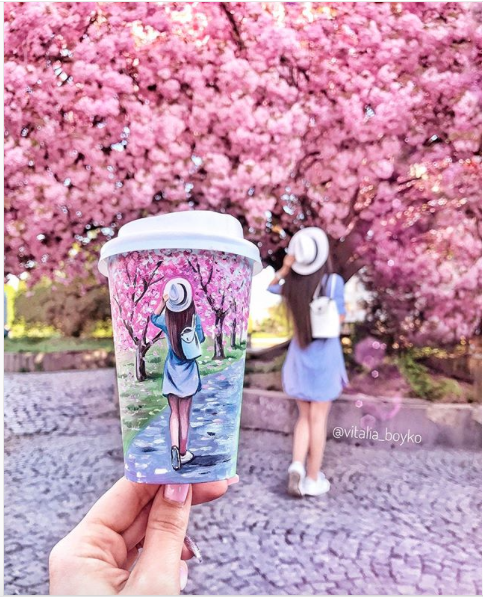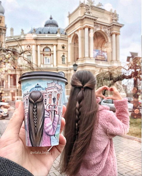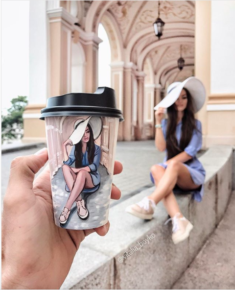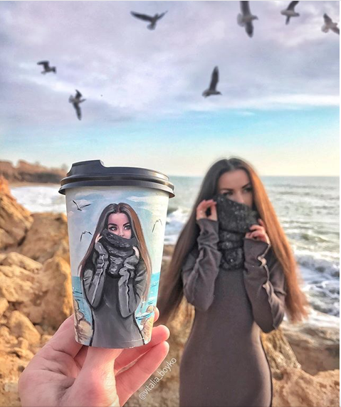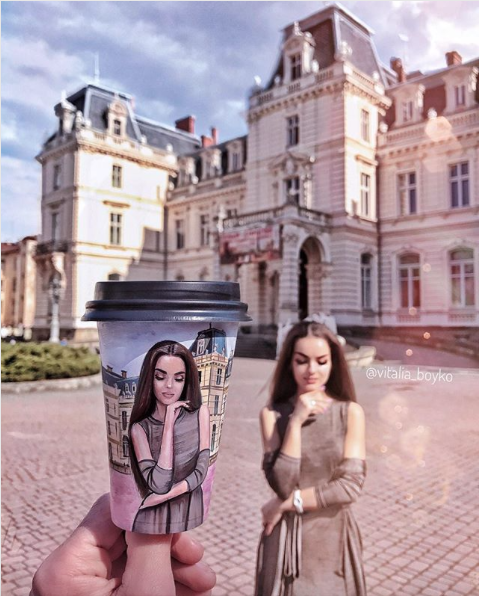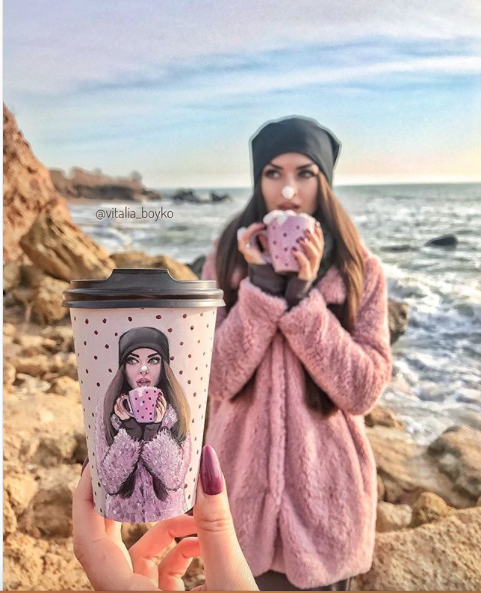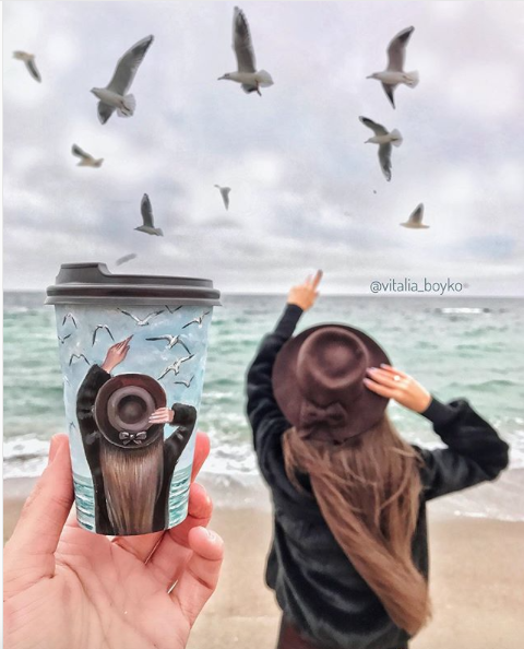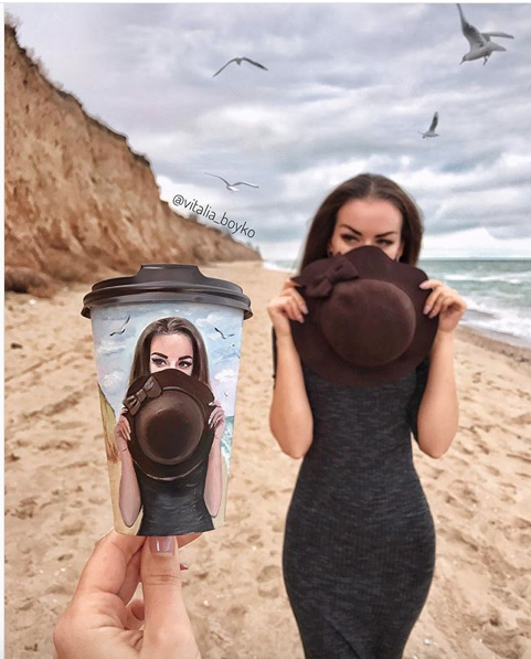 Vitalia in der Regel malt sich selbst auf die Tassen oder Bilder von sich selbst Porträts in verschiedenen Standorten. Sie nimmt dann ein Bild von der Tasse mit mir selbst in der gleichen Position und Lage im Hintergrund. Also am Ende werden diese Becher wenig Schnappschüsse ihres Lebens, Reisen und Abenteuer. Ihr einzigartiges Projekt sammelte eine große Popularität aufInstagram. und sie hat jetzt mehr als 76K Anhänger. Als sie zum ersten Mal dieses Projekt begonnen hatte sie keine Ahnung, wie es diese auf Social Media explodieren würde, aber es war sicher eine angenehme Überraschung. Werfen wir einen Blick auf einige ihrer Tasse Gemälde, sollen wir?