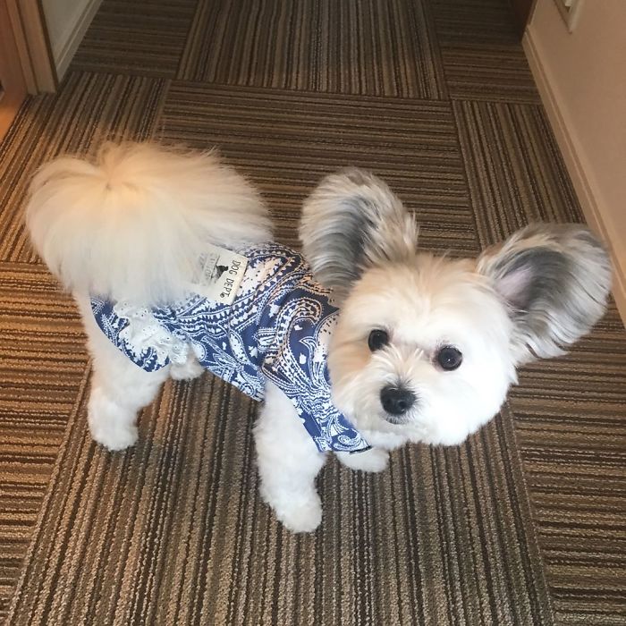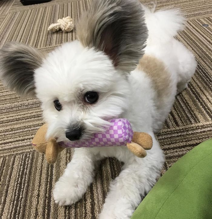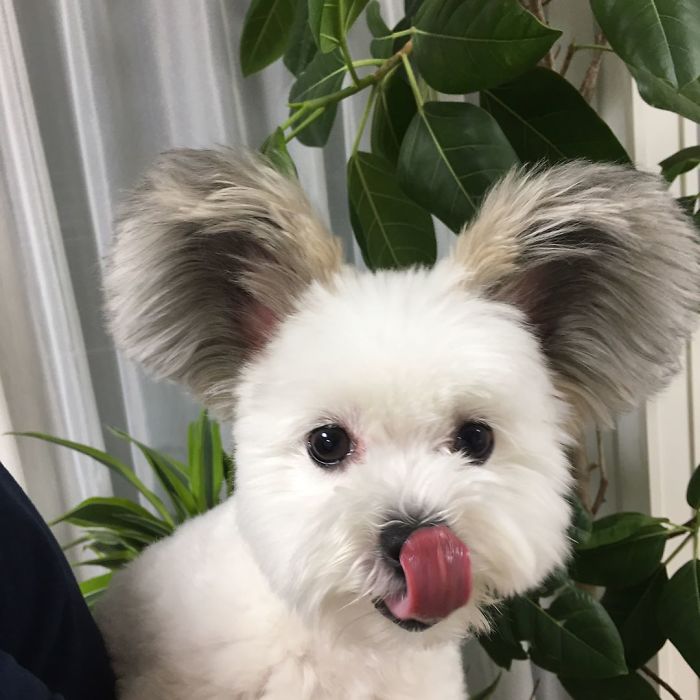 Haben Sie jemals eine echte Lebensversion von Mickey Mouse gesehen? Nun, man existiert, und sie ist keine Maus. Diese kleine Gal wird genanntGoma (Es bedeutet Sesam auf Japanisch), und sie ist ein Papillon-Maltesischkreuz.