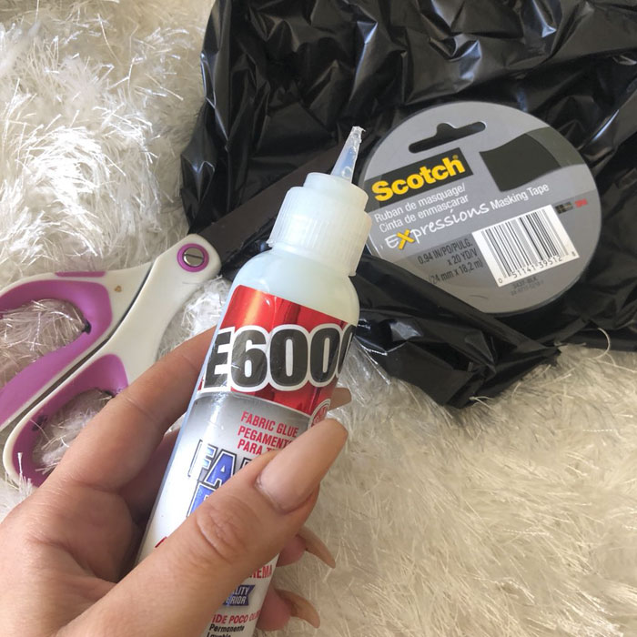 Sie klebte mit Stoffkleber und schottischem Klebeband an den größeren Rosen auf den Boden.