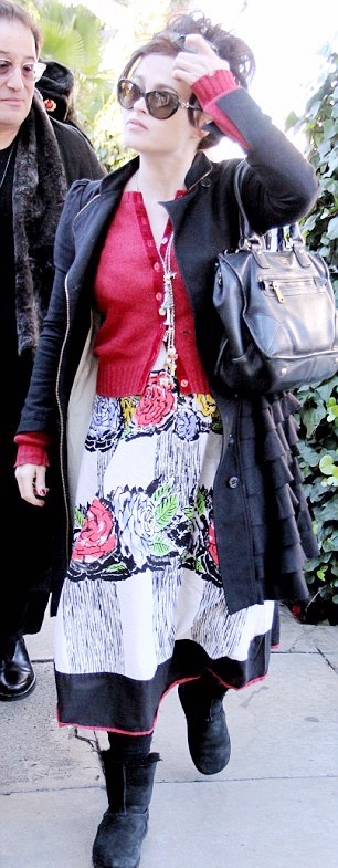 6.Wenn Sie dieses Outfit an jedem anderen gesehen haben, würde es wahrscheinlich nicht gleich aussehen, aber auf Helena funktioniert es einfach. Es stellt sich heraus, dass Sie einen massiven roten Blumenrock mit einer schwarzen Jacke und einem Gingham-Schal und einer Art fingerloser Handschuhsituation tragen und schlecht aussehen, wenn Sie Helena Bonham Carter sind.