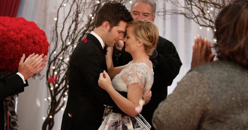 Ich wage, dass Sie eine heisere Hochzeit finden, als die von Leslie und Ben von Parks & Rec. Ich meine, alles dagegen war so süß, das handgemachte Kleid, Ron Swanson, der Leslie den Gang hinunterging, die Tatsache, dass es im Rathaus, deren Gelübde geschah. Ihre Beziehung und ihre Hochzeit sind wörtliche Ziele.