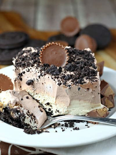 Wenn Sie ein Liebhaber Reese haben ist ein all die Dinge Erdnussbutter, dann ist diese prächtige Erdnussbutter und Schokoladenkuchen. Plus, der Mangel an Ofen bedeutet, dass die Kleinen bei der Herstellung dieser dekadenten teilnehmen können, zerdrückt Oreo gekrönt Kuchen.