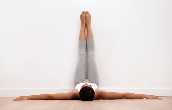 Diese invertierte Pose ist sehr verjüngt und bringt Relief an die Beine, Füße, Wirbelsäule und Nervensystem. Es wird nicht nur entspannen, aber es wird Sie erneuern! Es kann Linderung von Schlaflosigkeit, Kopfschmerzen, Angstzuständen und leichten Depressionen bereitstellen. In der letzten Pose einer Yoga-Praxis wird dieser erholsame Bewegungen oft das Leben wieder in Ihren Körper bringen.