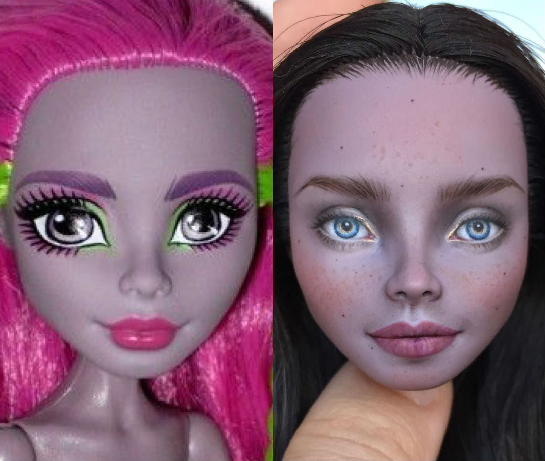 Nehmen Sie eine Bratz-Puppe, zum Beispiel, die seltsame Augen und Tonnen von Mascara, Lipgloss und Lidschatten haben. In Olgas Remix sieht sie aus wie ein süßes kleines Mädchen, und in unserer Sicht viel schöner.