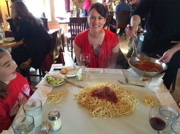 Als Bunkys Cafe in Madison, Wisconsin, serviert Wisconsin Spaghetti, vergessen sie die Platten. Stattdessen wird es auf eine Kunststoffabdeckung abgeladen, die vier Personen dienen kann. Ein echtes Gemeinschaftserfahrung, um sicher zu sein, obwohl der Fehlen einer warmen Platte nicht den Spaghetti verursacht, um ziemlich schnell kalt zu werden?