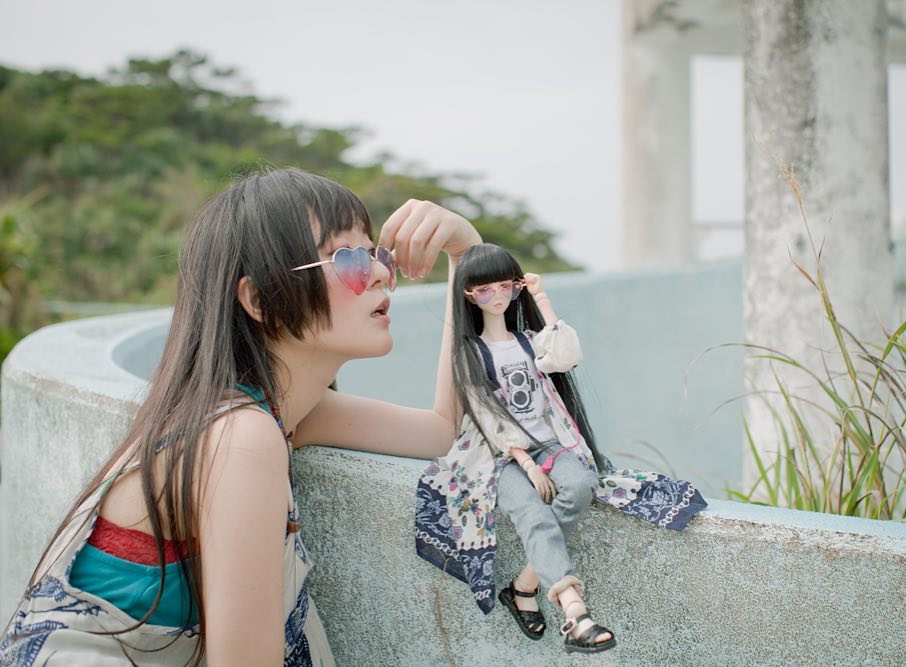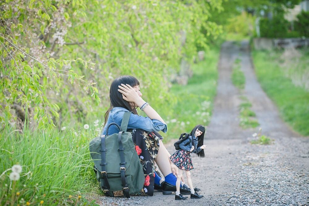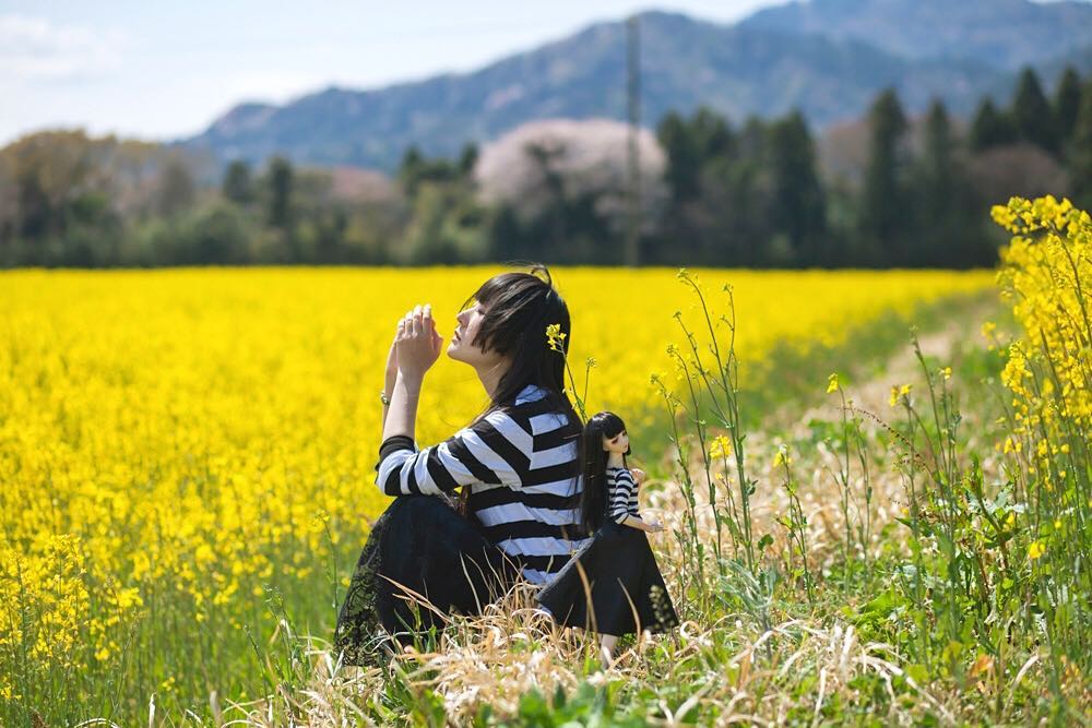 Ein japanischer Fotograf hängt mit einer Puppe heraus, die genau wie sie aussieht und kleidert!