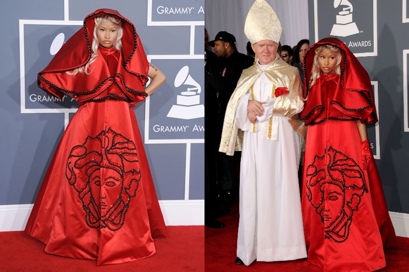Wie wir bereits erwähnt haben, hatte Versace nie Angst, eine Erklärung zu erstellen, und zu diesem Zeitpunkt ist für viele Fashionistas Versace eine Religion. Nicki Minaj ging mit diesem roten Kleid an den Grammy Awards 2012 dorthin.