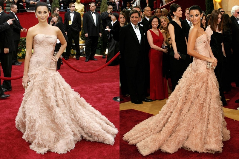 Dieses rosafarbene Kleid mit einem gefiederten Zug war im Jahr 2007 definitiv der Stern des Oscars Red Teppich. Es tat eine wunderbare Aufgabe, Penelope Cruzs Figur zu akzentuierten, während auch das unglaubliche Detail gezeigt wird, das in Versace-Kleider eingeht.