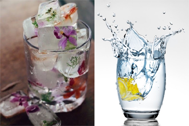 In erster Linie - Lassen Sie uns über Wasser sprechen. Sie müssen es nicht vorbereiten, Sie füllen einfach das Glas und es ist fertig. Ist es eine Mahlzeit? Nein, aber wir erwähnen es zunächst, denn viel Zeit, wenn Sie denken, dass Sie hungrig sind, sind Sie wirklich nur durstig. Und die Hydratation ist wichtig. Wenn Sie eine schöne klare Haut wünschen, wenn Sie sich lebendig und belebt fühlen möchten, wenn Sie möchten, dass Ihr Verdauungssystem reibungslos ausgeführt wird - Wasser ist der Schlüssel. Und du weißt, was besser ist als Wasser? Wasser mit gefrorenem Wasser - servieren Sie es an diesem heißen Sommertag auf den Felsen.