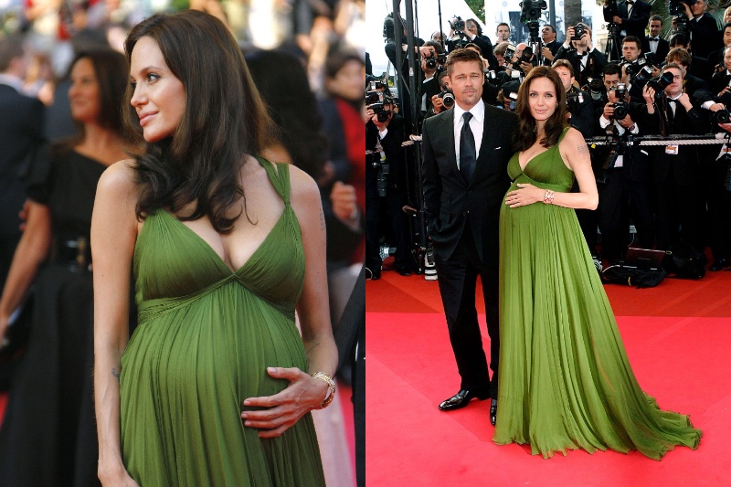 Sogar eine sehr schwangere Angelina Jolie sieht atemberaubend aus. Dieses grüne Kleid war eine großartige Wahl für die Veranstaltung und die Ankündigung ihrer Schwangerschaft.