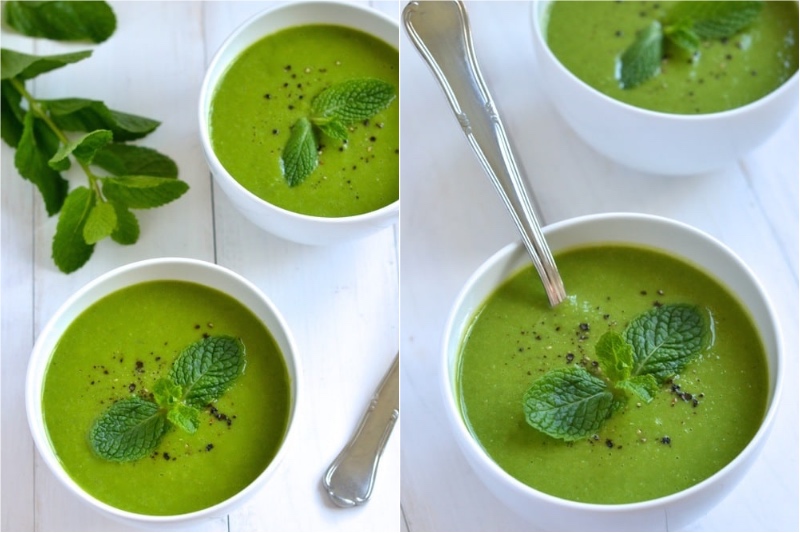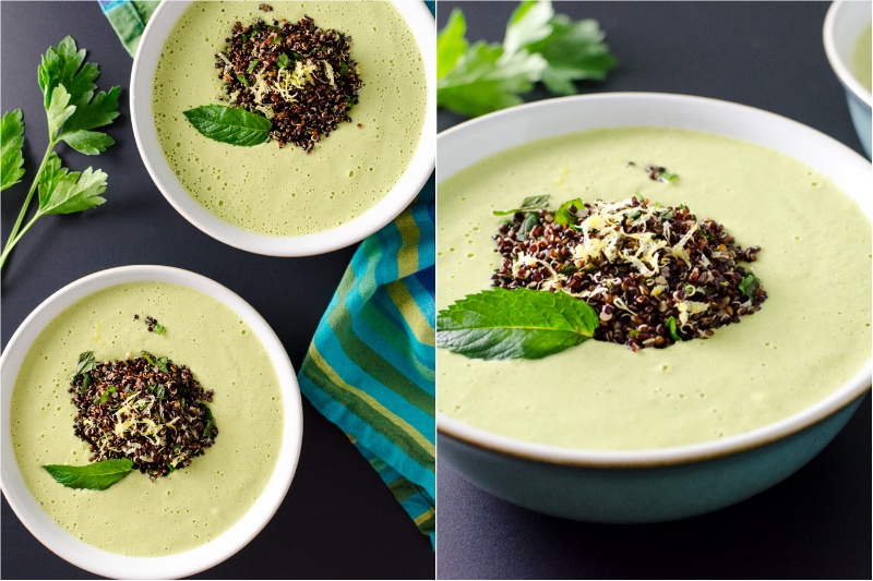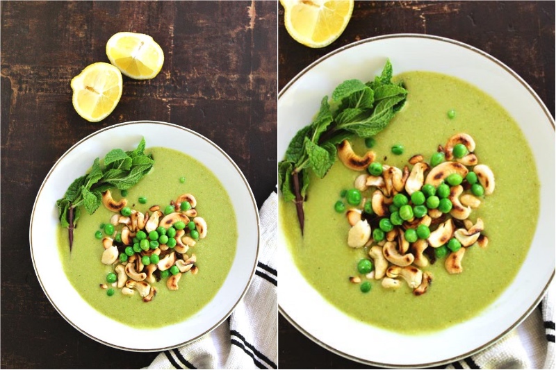 Diese Suppe hat alles. Es ist erfrischend dank Gurke und Minze und cremig dank Cashewnüssen und Erbsen. Es ist einfach die beste.