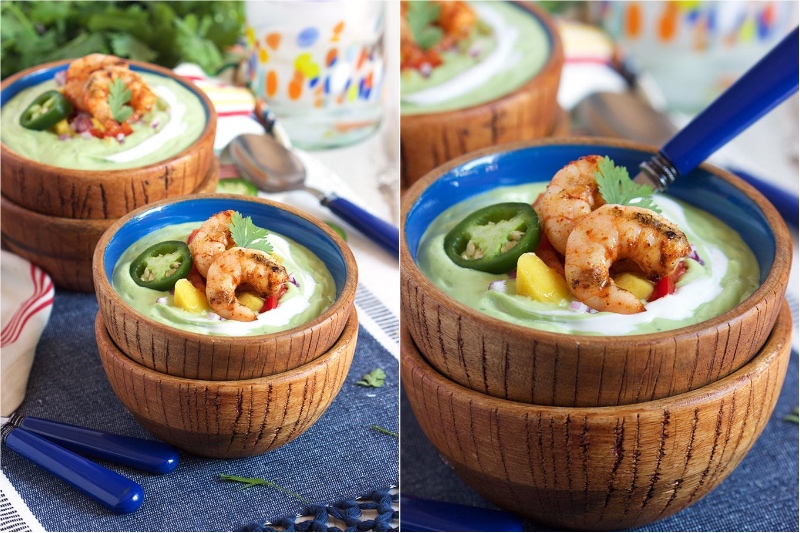 1. Gekühlte Avo-Suppe mit Garnelen vom Grill