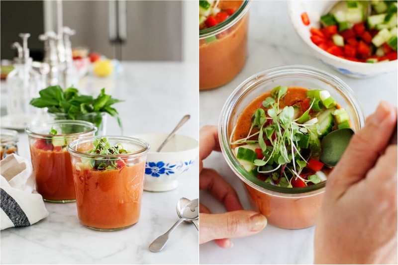 Eine etwas andere Perspektive auf dem klassischen Gazpacho, aber mit Kirschtomaten. Yumm!