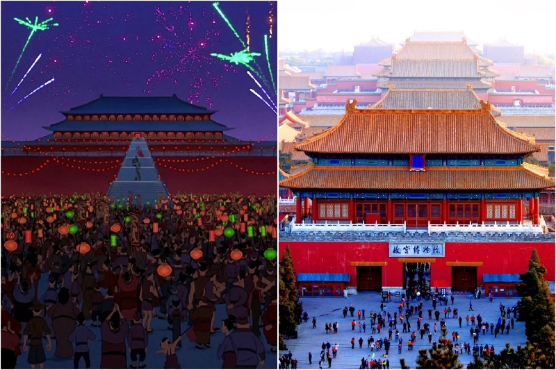 Der Kaiserpalast in Mulan ist auch nach einem echten Ort in China genau so modelliert, dass er die verbotene Stadt nannte. Es war früher ein Ort, an dem Kaiser der Ming- und Qing-Dynastien lebten, und es ist so benannt, weil niemand ohne die Erlaubnis des Kaisers in oder raus erlaubt war. In diesen Tagen ist es ein beliebter touristischer Ort in Peking, China, es dient als historisches Museum von alten Artefakten und Kunst.