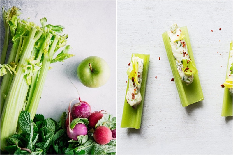 Sellerie ist in Kalorien unglaublich niedrig, daher ist es eine großartige Option für einen Snack oder einen Weg, um Ihre Mahlzeit auszufüllen. Es sind nur 16 Kalorien pro 100 Gramm, also können Sie nie zu viel essen können, und es hat Nullfette, und es ist voller Faser, die großartig für Ihren Bauch ist. Pro Tipp: In kleinen Stücken gehackt, Sellerie ist eine großartige Alternative zu Popcorn für einen Filmnacht in.
