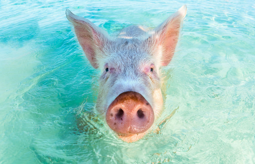 Die Bahamas ist nicht nur die Heimat von kristallklarem Wasser und unberührten Himmel. Es gibt eine tatsächliche mit Schweinchen gefüllt Schwein Insel, die an das Leben auf der Insel angepasst hat, und somit neben Sie in den Gewässern schwimmen kann. Niemand ist sicher, wie diese kleinen Schweinchen auf der Insel bekommen, aber sie sind so liebenswert, wir kümmern uns nicht.