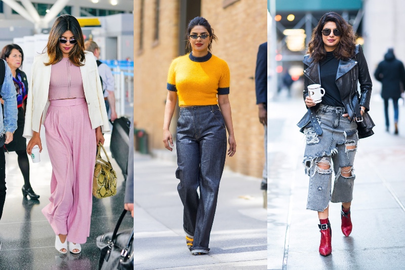 Priyanka trug einige ihrer klassischen, weiblichen Outfits neben einigen wirklich mutigen und kantigen Looks. Wir liebten die Lederjacke und den Ripping Jeans-Look, und dass das Fuzzy-Gelb-Erntegut auch sehr süß ist.