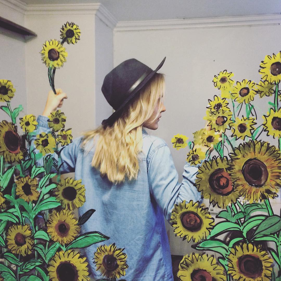 Aufstellung in einem Feld von Sonnenblumen ist ein Traum für viele Instagram-Benutzer. Helen hier beschloss, genau das zu tun, aber ohne den Raum zu verlassen!