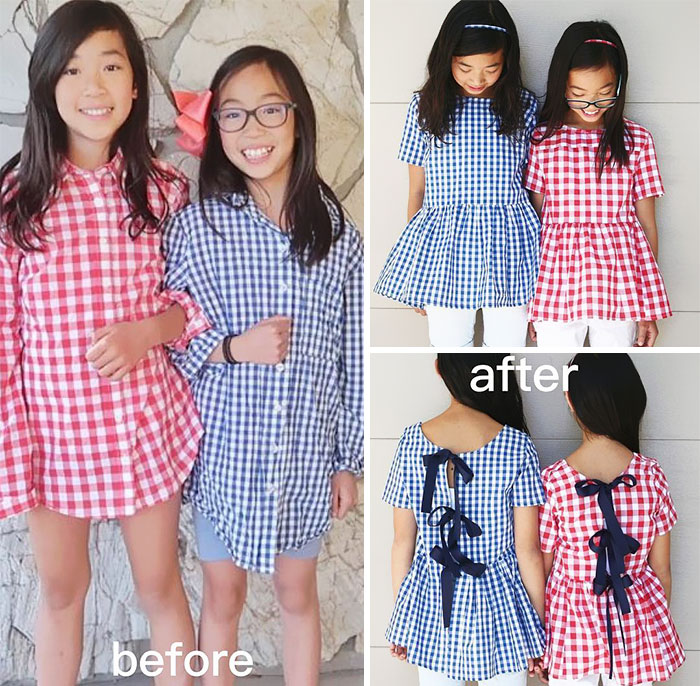 9. Wenn das Hemd zu kurz ist, um ein Kleid zu erstellen - machen Sie es in ein dressis TOP. Schauen Sie, wie entzückend diese beiden sind.
