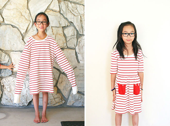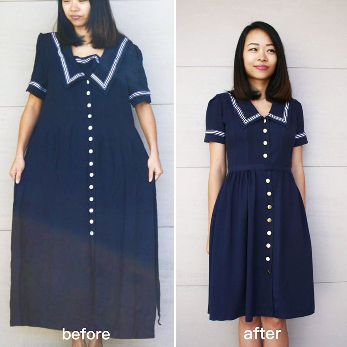 15. Dieses Kleid fehlte definitiv eine Taille, die leicht genug ist, um sie zu fixieren. Machen Sie es auch kürzer und Sie haben ein hübsches Seemannkleid.