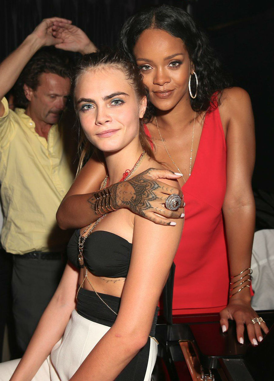 Besties auf einer Modenschaujahre vor Jahren. Beschäftigter Zeitpläne, aber immer das Telefon abholen und chatten oder Ratschläge geben. Rihanna sagte, dass einer der Geheimnisse ihrer Freundschaft "dumm miteinander" ist, was darauf hinweist, dass BFF Cara sie zum ersten Mal auf die Beute schlug, als sie das erste Mal traf.